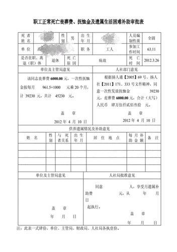 第一,丧葬费是职工死亡时的丧葬事宜的一次性费用,每个省份的具体金额数不一样,具体可以看人社规定。一般正常参保职工死亡后,会有三笔金额:丧葬费、一次性抚恤金、遗属生活补助费。具体费用来源主要是养老保险,所以发放多少金额也取决于当地生活水平和个人所交养老比例;正常参保人员,在没有达到法定退休年龄而死亡,养老保险个人账户储存额全部退还给法定继承人,并支付丧葬补助金和抚恤金。机关事业单位的在职和离退休职工,丧葬费按上年度职工平均工资的4个月标准实行,不分因公或者非因公。