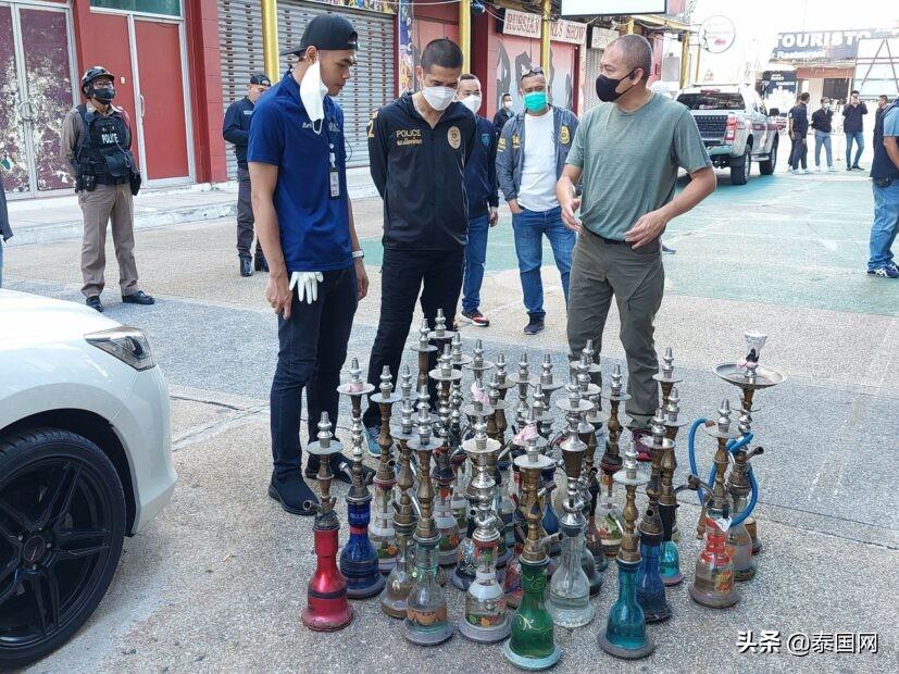 此前,泰国春武里芭提雅警方查获一个毒品派对,通过线报获悉当地某酒吧内有外国游客涉嫌聚众吸毒。7月24日清晨06:30,芭提雅警方遂携相关部门工作人员突查芭提雅步行街某知名酒吧。并在现场逮捕了3名涉嫌吸毒的游客,缴获33个水烟壶、3公斤水烟制品。