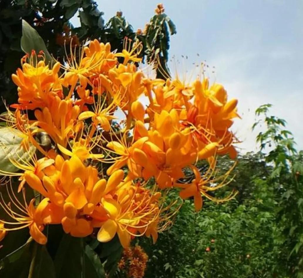 无忧树高5~1 0m, 树冠高大。羽状复叶,长椭圆形或长椭圆状披针形。圆锥状伞房花序顶生,金黄色,荚果扁平,长椭圆形。