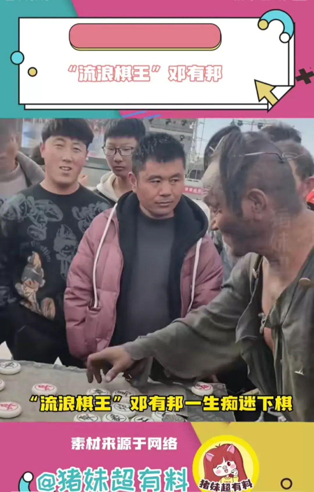 网友们之所以对邓友邦肃然起敬,可能是因为经过生活的磨砺,绝大多数人都会放弃自己小时候的梦想,可唯独邓友邦这位衣衫褴褛的老人,穷尽了一生的精力去坚持那个最初的理想,成为了网友心中的流浪棋王