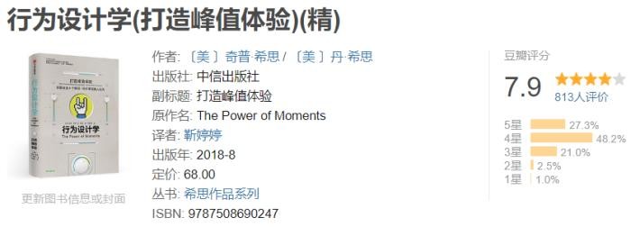 《行为设计学:打造峰值体验》这是一本能够快速拉近人与人之间关系的书,无论是在工作中应用到客户身上,还是应用于亲密关系中,相信都会起到很不错的效果。