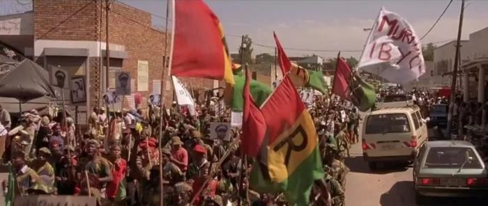 影片一开始,就是黑幕下一个广播电台煽动种族屠杀的言论