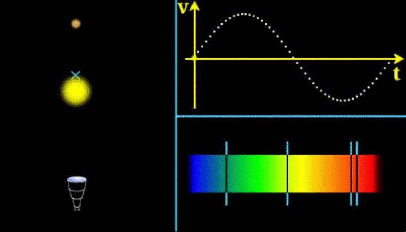 今天,无法直接看到或成像的系外行星仍然可以通过它们对母星的引力影响而被探测到,这会导致周期性的光谱漂移,可以清楚地观察到。