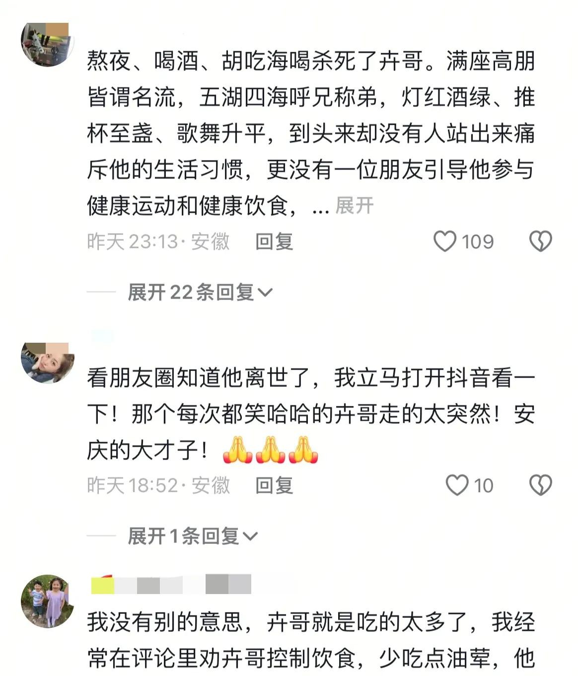 希望李卉一路走好!不敢想象老母亲得知噩耗后,该如何接受这白发人送黑发人。也希望大家能够引以为戒,合理饮食、规律作息,别放纵过度,平安健康才是福。