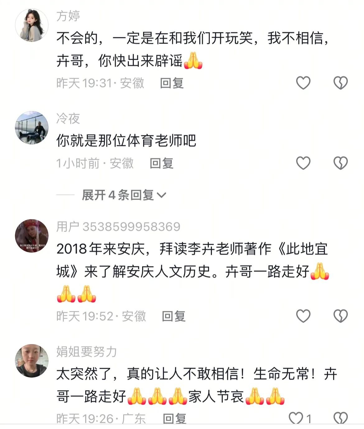 安庆的文旅部门打算将他的故居设定为文化驿站,不过网友们却更为留意他生前最后一条视频的评论区。
