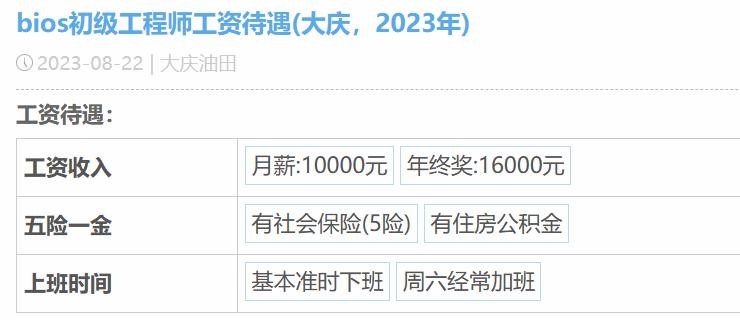 这位大庆油田员工,岗位是bios软件工程师,工作地点大庆,年终奖16000元。