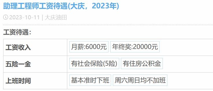 这位大庆油田员工,岗位是助理工程师,工作地点大庆,年终奖20000元。