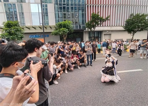 随着日落西山,漫展的氛围达到了高潮,音乐声渐起,coser们开始了一场精彩的舞台表演,舞动的身影与炫目的灯光交织成了一幅梦幻的画卷。观众在下面欢呼、尖叫,仿佛回到了青春年少的时光。每一位参与者在此刻都忘却了生活的压力与烦恼,只为沉浸在这流光溢彩的二次元世界中。