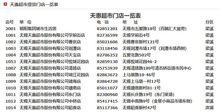 天惠商场官网上的部分门店,1014号稻香店在列
