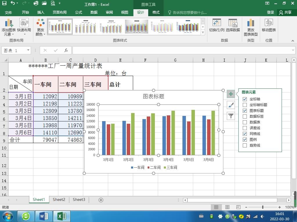 3.添加图表元素:标题、图例、数据、数据表、趋势线等。