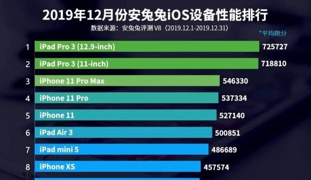 随着人们生活水平的提高,买一台iPhone手机也不再是难事,十年前苹果手机进入国内,当时五六千的价格可真是让人无从下手,可如今大家的收入普遍提高,苹果公司也推出以旧换新、分期免息服务等,这时候买一台iPhone就不再是难事了,身边买苹果产品的也是比比皆是,而iPad平台电脑在国内也是炙手可热,苹果产品给大家的印象就是性能强大系统流畅度很高,那么究竟谁才是iOS设备的王者呢?这时候iOS设备跑分排名出炉:iPhone11 Pro Max仅第三,第一名72万分!