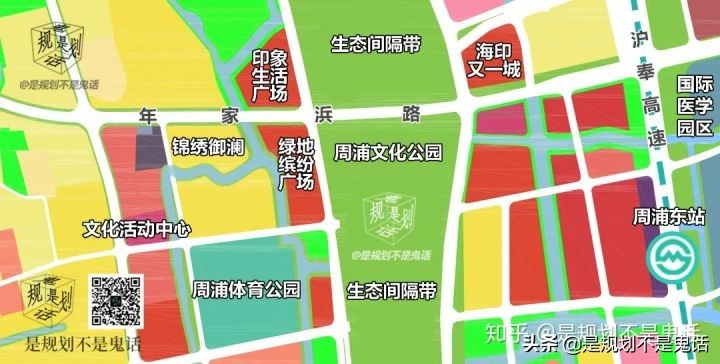 从规划图看,16号线周浦东站站点周边有大量商办用地,尚未开发。开发后有望同周浦文化公园另一侧的绿地缤纷广场等,共同组成新核心。