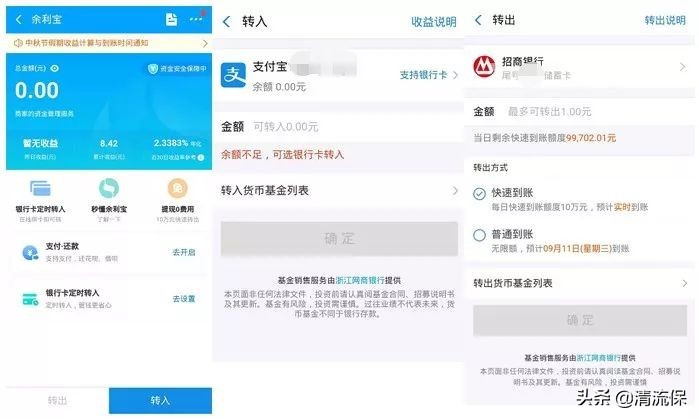 操作就是,从银行卡里直接把钱转进零钱通里,不但能做到提现免费,还能有收益,一举两得啊。