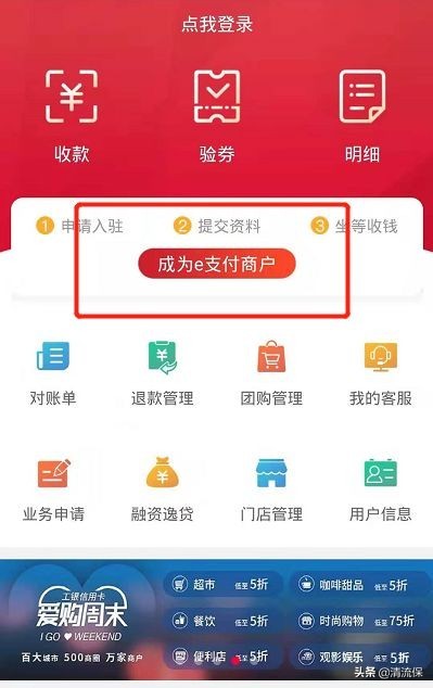 以工商银行为例,首先需要下载”工银商户之家”APP,申请“成为e支付商户”,之后按照要求操作填写就可以。