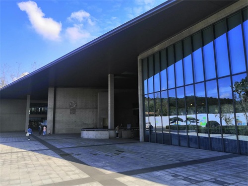 从我在杭州暂住的地方休闲漫步数百米,即可抵达一座风格别致,造型独特的建筑,它就是被年轻人情切的称为“大屋顶”的良渚文化艺术中心。