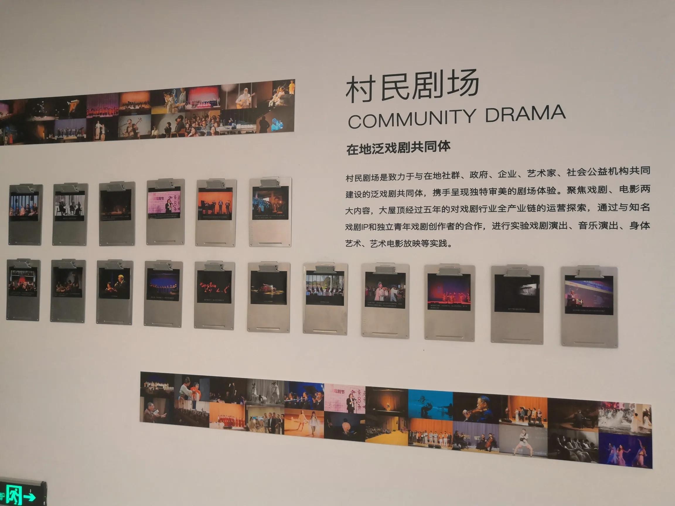 该艺术中心集合了公益图书馆(晓书馆、村民书屋)、艺术展览、剧院等于一身,同时还有文创馆、咖啡馆等,这里除了常规的电影放映外,经常有戏剧演出在这里上演。随着季节的变幻经常性的举办各类艺术节,如春天的樱花艺术节,暑期的杭州国际小提琴艺术节等等。不定期的举办各种展览及名家讲座以及公益类活动。走进大屋顶,右侧展厅展览的内容为良渚文化村的今夕及村规民约等。刻写在墙上的“村民公约”给我这个暂住此村的村民留下了深刻的印象。如:第三条:在小镇公共场所,我们放低谈话音量。