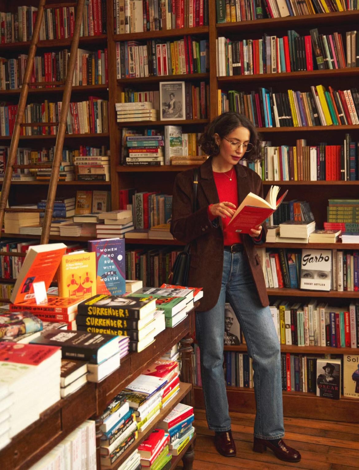 色彩可以说是法式穿搭中的灵魂所在,除了极简的黑白灰棕这些素色是法国女人的最爱,她们还偏爱一些明度比较低、色彩较为浓郁的有彩色。比如说柿子红、藏青色、酒红色、焦糖色、墨绿色......这类颜色有一个共同的特点就是既沉静又明艳,自带复古做旧的滤镜,就像是从艺术家油画中剥离出的颜色,有着历史的沉淀韵味。