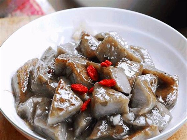 承德的碗坨是用荞麦面同猪血揉到一块儿,加热熬成粥糊状,晾凉以后即成。食用时,将它切成薄薄的三角块,在油锅中煎透,盛入碗内,浇上芝麻酱、蒜汁、陈醋、盐、味精等作料,用竹签扎着吃。这与北京的灌肠极为相似,只是原料不同。制作方法是:用荞面、杂豆面(绿豆最好)各半(豆面也可适量少放点),配上少许五香粉、花椒粉,像熬粥一样熬熟,倒入碗内晾成坨,而后打块上铛煎透,吃时放麻酱、蒜泥、醋等佐料。