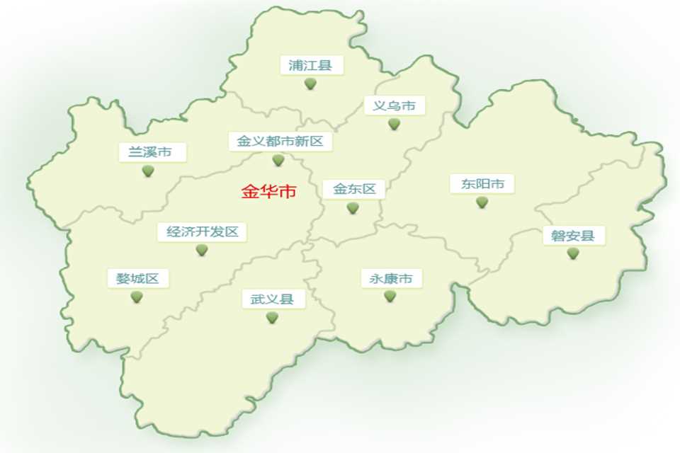 浙江省金华市有婺城区、金东区、武义县、磐安县、浦江县、义乌市、兰溪市、永康市、东阳市四个县级市。