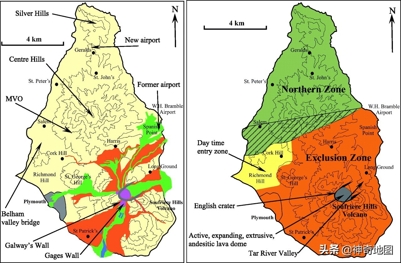 但1995年岛中南部的苏弗里埃尔(Soufriere)火山喷发改变了这一切,汹涌而出的岩浆将首府普利茅斯夷为平地,也让此前赖以发展旅游业的美景不复存在。岛上近1/3的土地被火山岩浆掠过,造成大片土地已经不再适宜于人类居住。更为糟糕的是,火山的喷发至今仍未结束,时断时续的喷发,使得火山变成时时刻刻悬在岛上居民头顶的“达摩克里斯之剑”。
