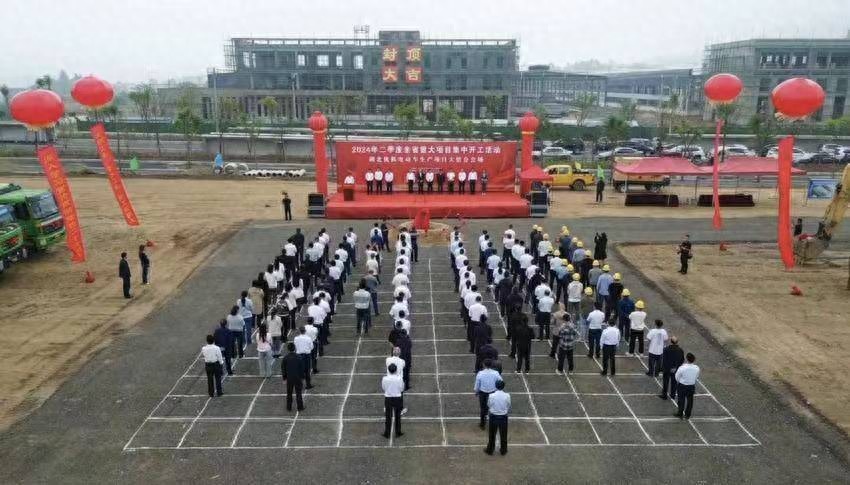 人间四月满眼春,五岳山上映山红。4月28日上午,城关镇精密智造产业园内,微风习习、彩旗飘飘,总投资1.5亿元的湖北优狐电动车项目正式开工。
