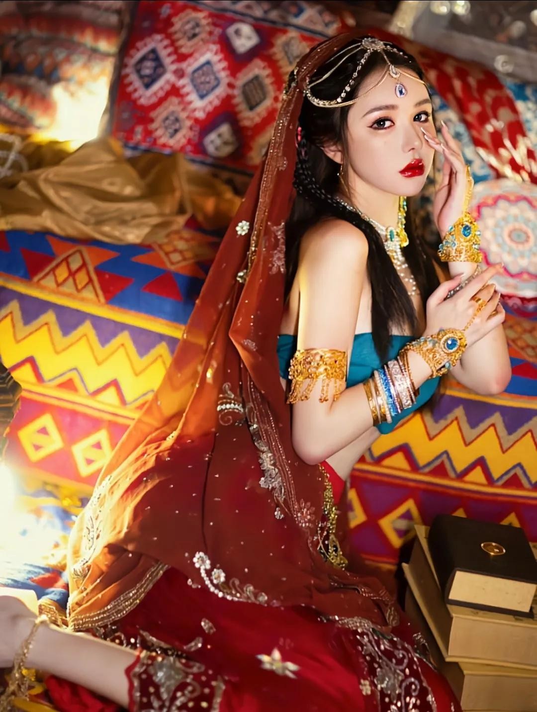 明眸皓齿、惊艳绝伦,一切美好的词都难以形容,现代美女穿上异域风情的服装也一样美得看直了眼。
