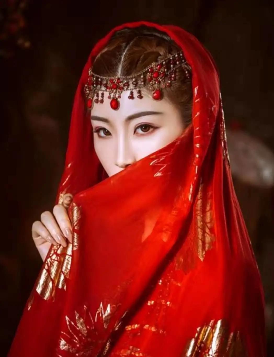 高贵而神秘,额前红色的珠宝不仅自带异域风情,还把人装点得娇俏玲珑,真是太美了!