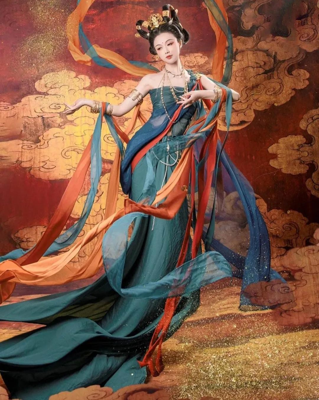 敦煌飞天形象一直深受美女的喜爱,自带仙气,犹如从壁画中走出来的美人,实在太美了!
