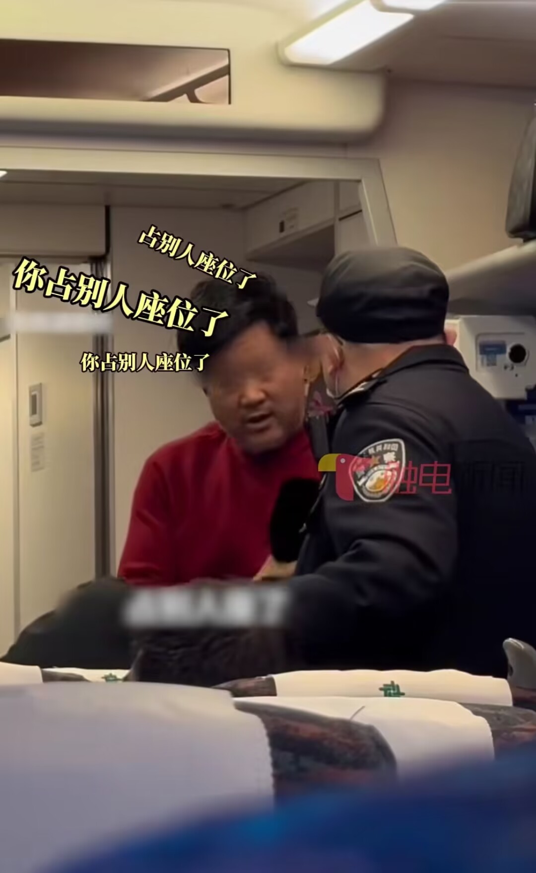 乘警大哥无情的说出“你占别人座了,你占别人座了,你占别人座了”。