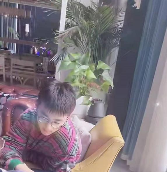 李宣的儿子戴着黑框眼镜,身穿红色条纹上衣,五官端正,少年气十足。而李宣的老公身穿星星睡衣,发型有些凌乱,毫无气质。