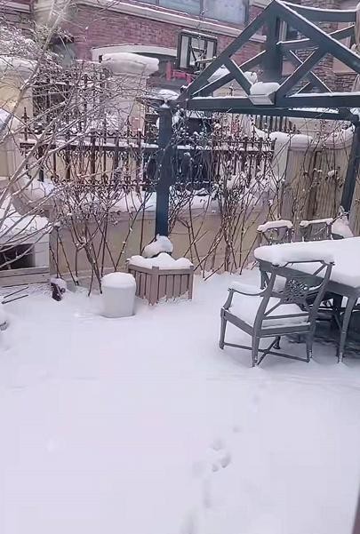 不光如此,李宣的别墅内还有一个超大的庭院,院子里下满了积雪,整个景色美得像一幅画。