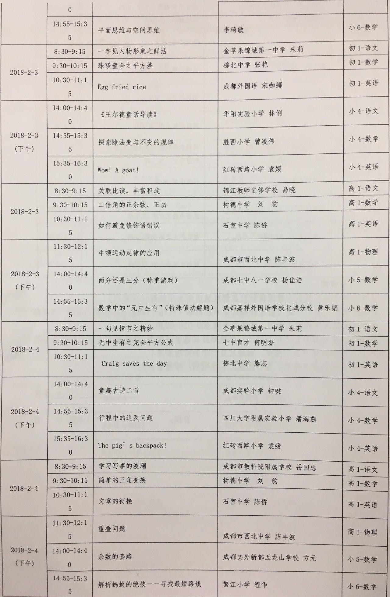 寒假直播课程表: