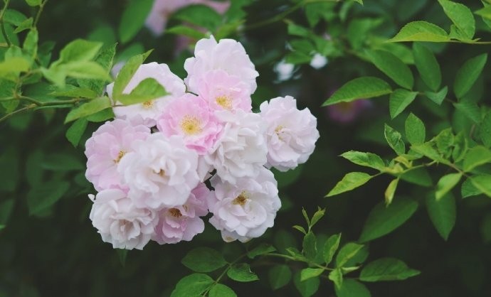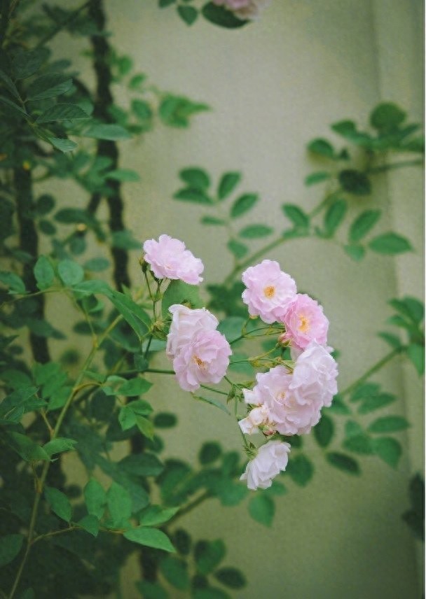 “朵朵精神叶叶柔, 雨晴香拂醉人头 ”意思是,朵朵盛开的蔷薇花与那片片温柔的绿叶互相辉映,鲜艳如锦,嫣然可爱。雨晴之后,浓香四散,飘拂于空中,闻后使人陶醉。