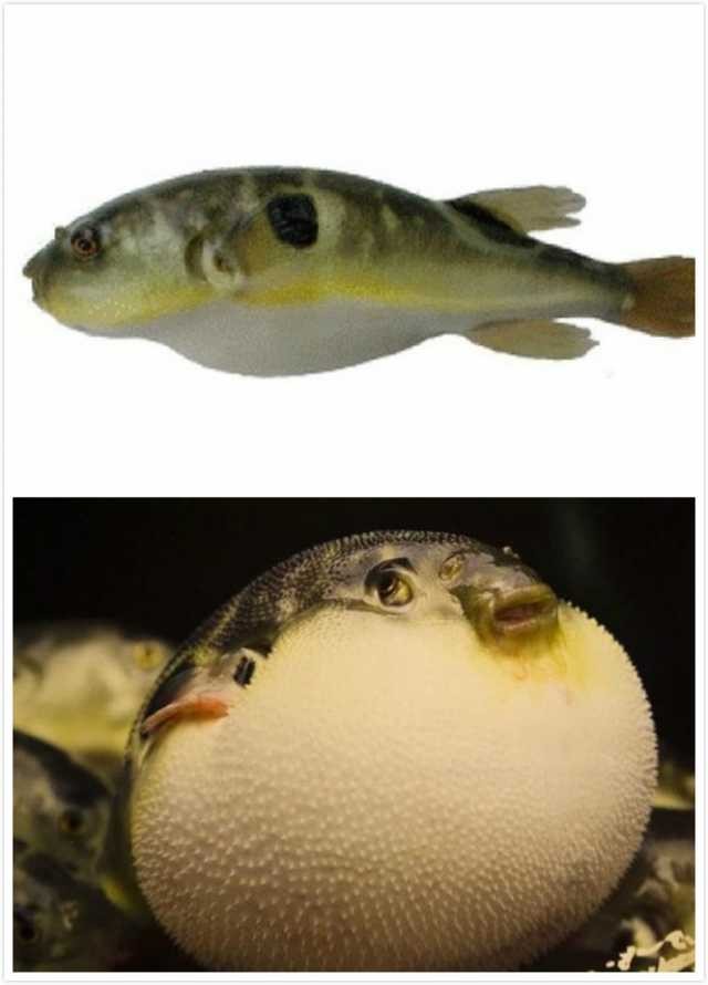 河鲀有一个特别的本领,遇到敌人的时候,就自己吹起,把自己胀大好几倍,吓退敌人。所以看着一脸呆萌的河鲀,骨子里却是一枚“绝命毒师”!