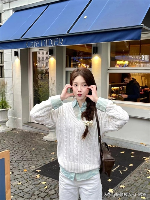比如说,双手环抱胸前,歪头对着镜头微笑,或者是双手环抱胸前走起来,让摄影师抓拍,这种拍出来的效果都很自然。