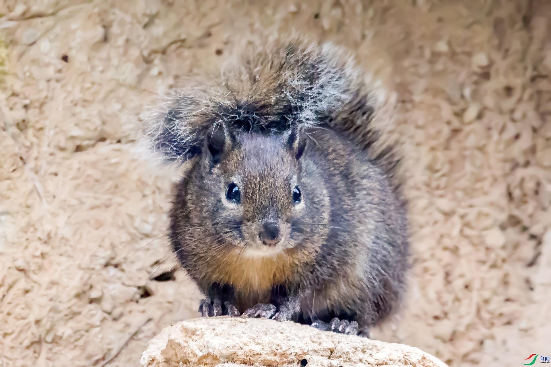 岩松鼠又名“石老鼠”,“扫尾子”,外形有些像红腹松鼠。耳大明显,四肢略短,尾毛蓬松、稀疏,背毛呈青灰色,腹部及四肢内侧毛为黄灰色,下颌为白色。岩松鼠则栖息在山区的岩石区,岩松鼠虽然能攀登于树上,但主要还在岩石间栖息,一般营巢于岩隙间。岩松鼠白天活动,主要以野生果实或植物种子为食,如坚果、胡桃、杏等,但有时也会食农作物,是一种山林的害兽。