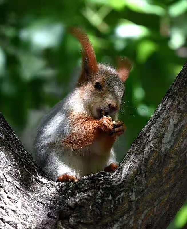松鼠的种类很多,全世界约有212种,中国有24种。其中生活在树林里的松鼠,在中国东北和华北各地十分常见,因而又叫普通松鼠。它的身体细长,体毛为灰色、暗褐色或赤褐色,所以也称灰松鼠。