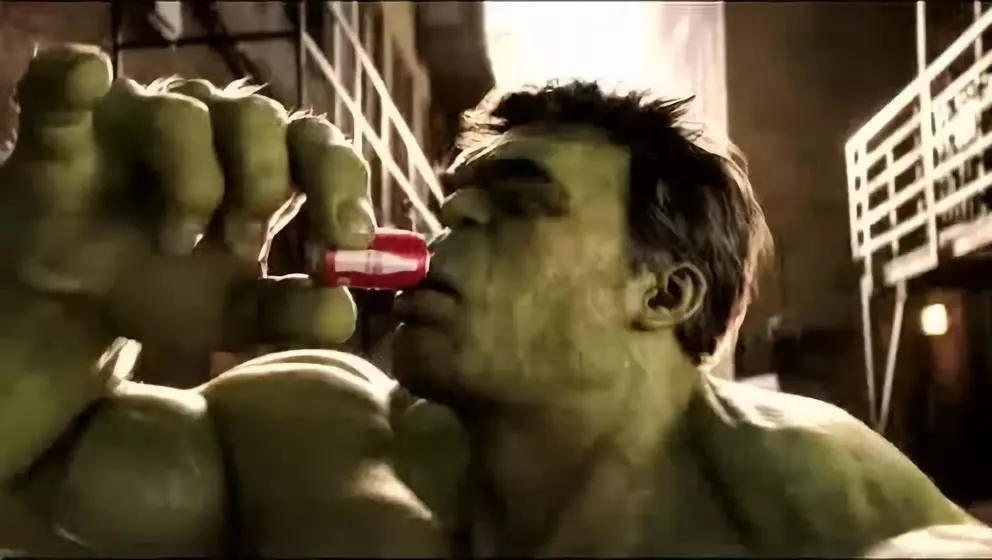 图为绿巨人喝可乐的场景