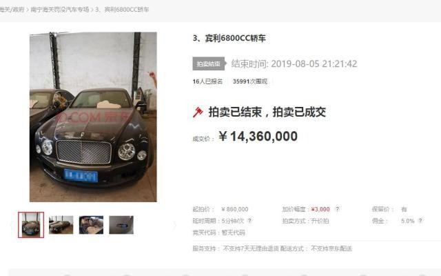 这起网络拍卖发生于今年8月5日,拍卖的标的物是一辆二手宾利轿车,车辆的起拍价是86万元,由南宁海关委托广西公务拍卖行有限公司进行拍卖。