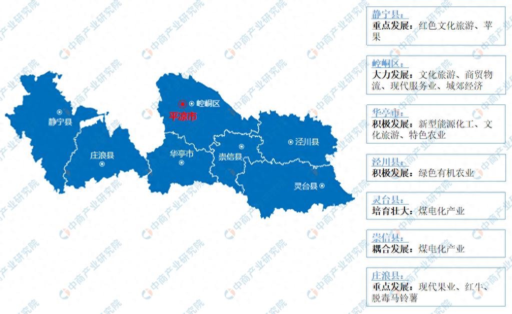 平凉市各区域重点产业分布