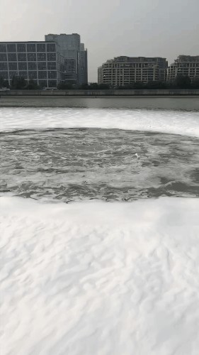 记者从海事部门了解到,他们接到报警,当时是说钱江四桥下游浙江第一码头对开水域300米处有大面积泡沫。接警后,海事人员立即赶赴现场,发现该水域有面积约800平方米的泡沫,且泡沫中心有水不断泛上。他们马上通知清污船舶赶赴现场。
