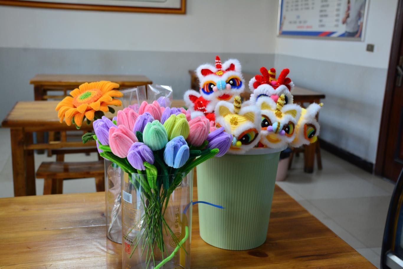 李银纳是个手工爱好者,惟妙惟肖的醒狮、五彩缤纷的郁金香……闲暇时她用扭扭棒做了不少精美的手工艺品。“马上过年了,想着可以拿出去卖,也能补贴家用。”