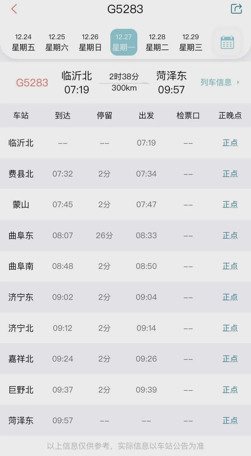 临沂北7:19——菏泽东9:57