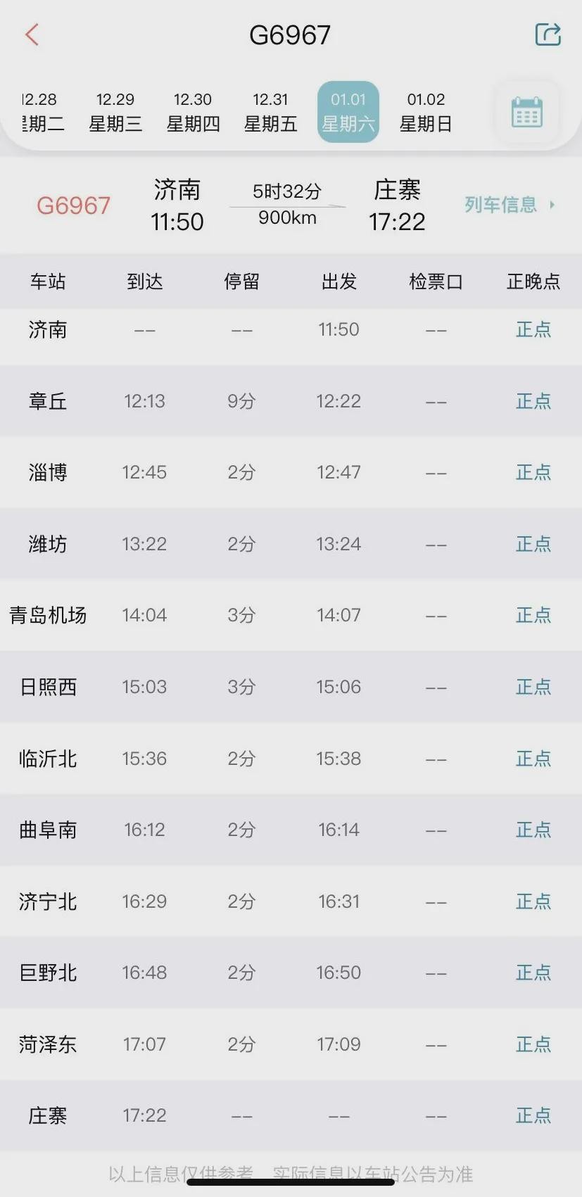 济南11:50——庄寨17:22