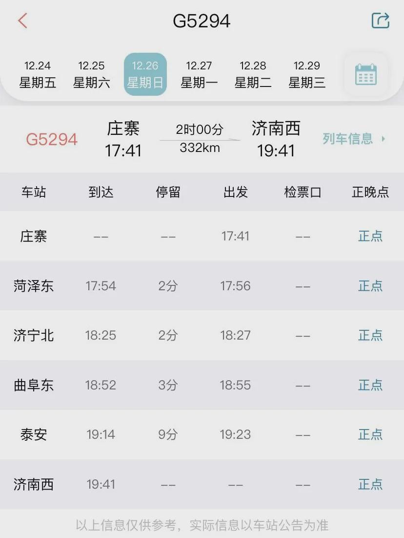 庄寨17:41——济南西19:41