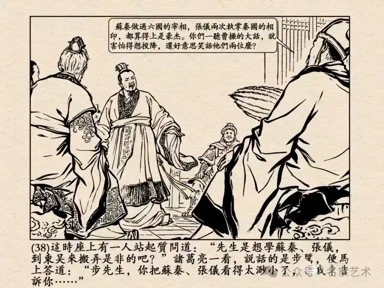 孔明回答的却不客气:“苏秦挂六国相印,张仪两次为秦相,二人不是诡辩之士,皆为经天纬地之才。现在曹操大军未至,只发了一纸书信来恐吓,有人就害怕的准备俯首称臣了,还有什么资格来笑话苏秦、张仪!”步骘无言以对,只能黯然退下。