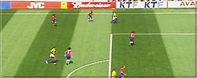 小组赛第二场比赛,巴西队迎来了世界杯新军中国队。罗伯特-卡洛斯的重炮轰门为巴西队首开记录,巴西3R各入一球让中国队亲身体会到了和世界顶级的差距。4:0,巴西队轻松地取得了比赛胜利。