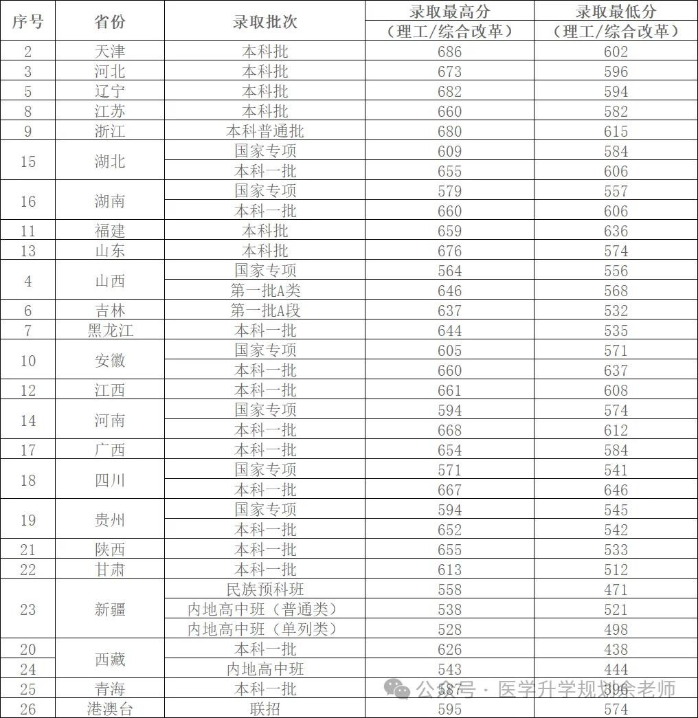 首都医科大学只在全国24个省份招生,哪些省份的录取分数线比较 高呢?