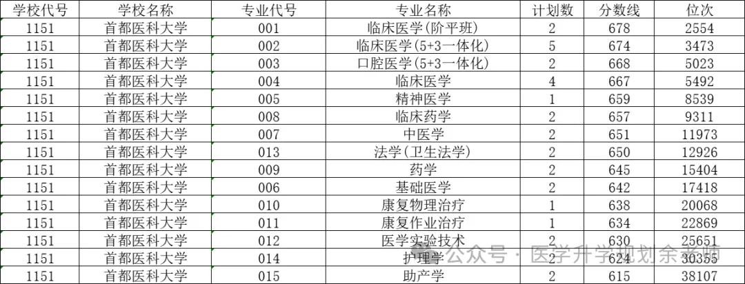 2023年首都医科大学在全国各省份的录取分数线情况如下: