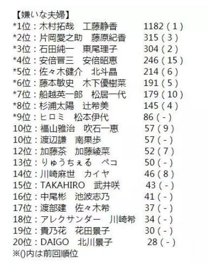 两人每年稳居日本民众最讨厌的名人夫妇榜单前三。
